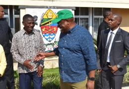 WAZIRI WA HABARI, MAWASILIANO NA TEKNOLOJIA YA HABARI NAPE NNAUYE AKISALIMIANA NA MKUU WA MKOA WA KIGOMA THOBIAS ANDENGENYE MARA BAADA YA KUWASILI KATIKA OFISI YA MKUU WA MKOA WA KIGOMA KWA ...